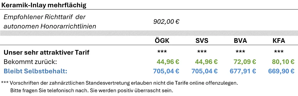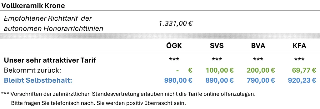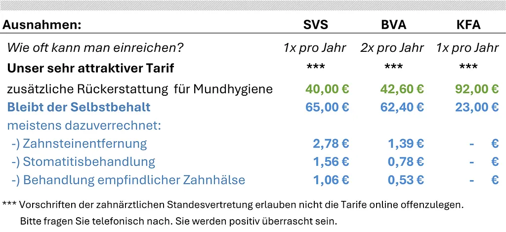 • Dies kostet bei den meisten Vertrags-Zahnärzten wesentlich mehr!