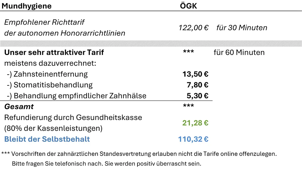 • Wird häufig bei Mundhygiene verrechnet